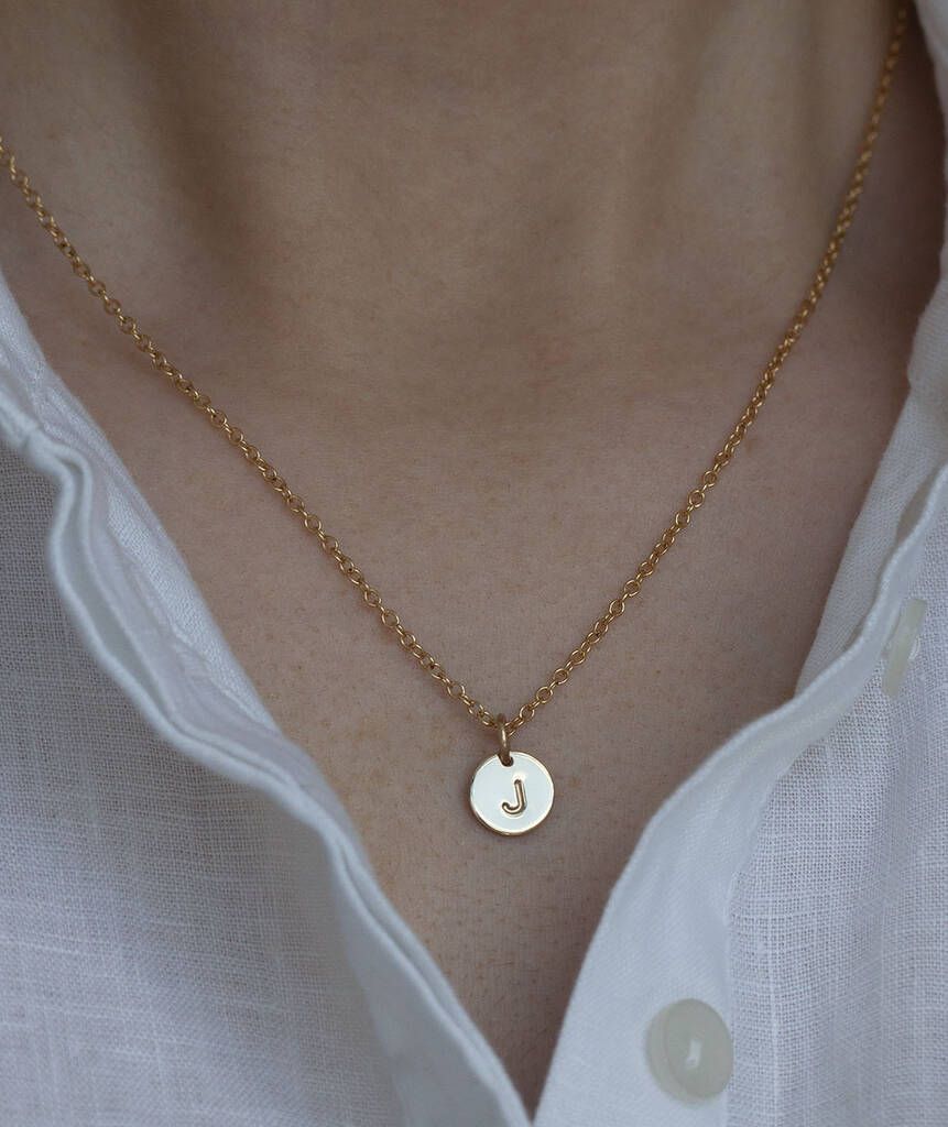 Keep your loved ones close with this dainty initial necklace. Featuring delicate gold discs engraved with initials, this personalized piece makes the perfect everyday accessory or a thoughtful gift.” ✨💖